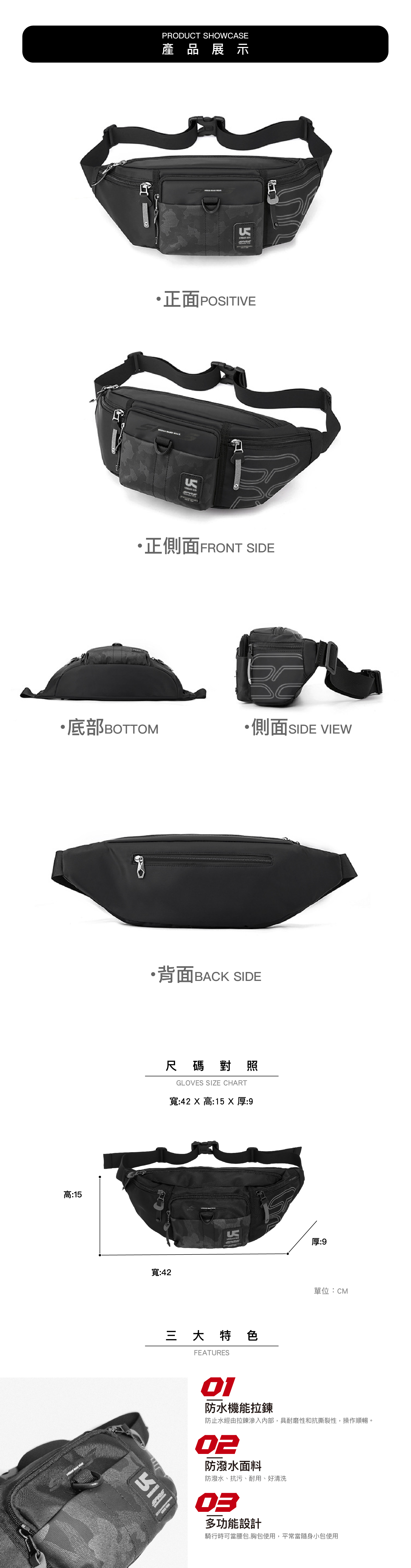 ●迷彩暗黑防潑水設計
